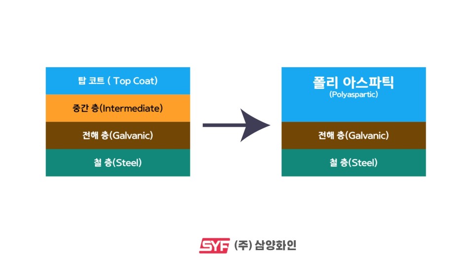 폴리아스파틱 타입 페인트 덕분에 동일한 대기 조건에서 같은 수준의부식, 색상 및 광택 저항을